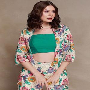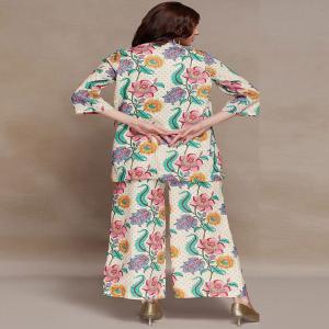 Beige Printed Poly Blend Fusion Set - XKS16817