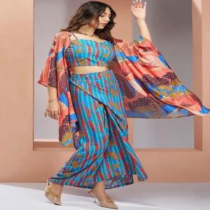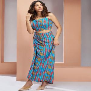 Blue Printed Poly Blend Fusion Set - XKS16856