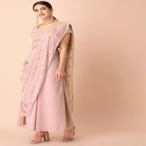 Blush Foil Palazzo Pants with Attached Dupatta