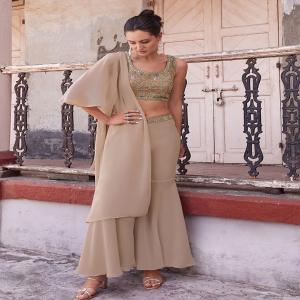 Majority of our items contain embellishments and embroidery and therefore fragile in their usage. From time to time beading/ sequence may get displaced and this is not regarded as a fault but is due to the nature of the work. These garments should be worn with care.