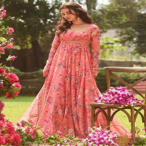Coral Multicolor Floral Printed Anarkali
