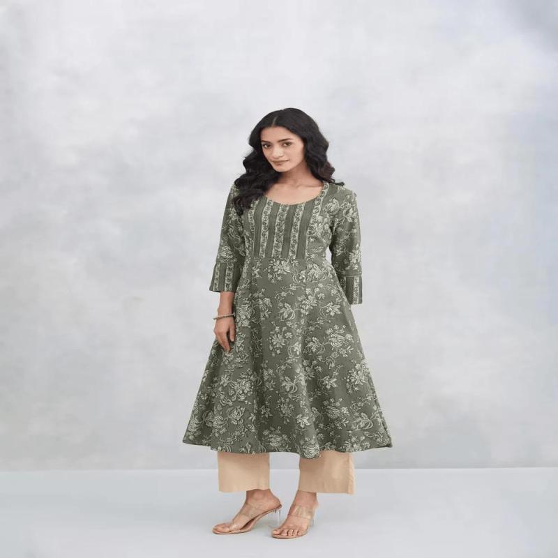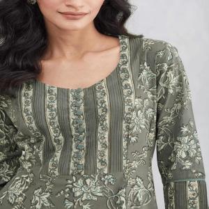 Grey Cotton Dabu Printed Slim Fit Long Kurta