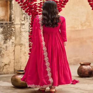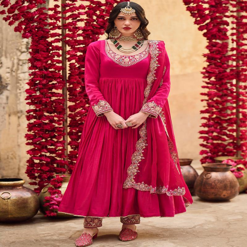 Hot Pink Embroidered Satin Anarkali