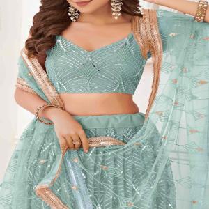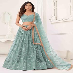Ocean Blue Thread Sequin Embroidered Net Lehenga - XLH02292