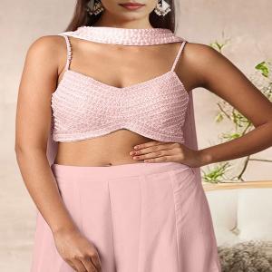 Peach Palazzo Set With Hand Embroidered Blouse And Dupatta - DFS00159
