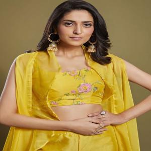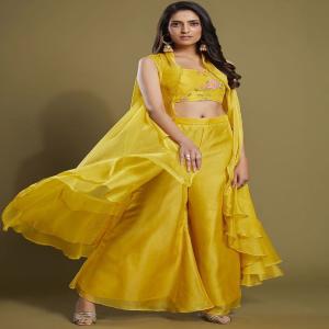 Yellow Embellished Poly Blend Fusion Set - XKS16803