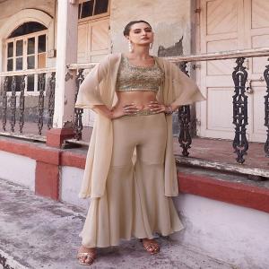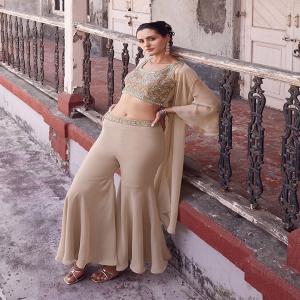 Majority of our items contain embellishments and embroidery and therefore fragile in their usage. From time to time beading/ sequence may get displaced and this is not regarded as a fault but is due to the nature of the work. These garments should be worn with care.